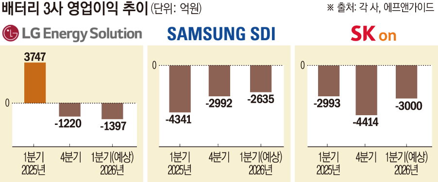 »ï¼ºSDI¿Í SK¿Â ¿ª½Ã ¿ÃÇØ 1ºÐ±â 3000¾ï¿ø´ë ¾ÈÆÆÀÇ ÀûÀÚ°¡ ¿¹»óµÇÁö¸¸, ÇϹݱâ ÈæÀÚ ÀüȯÀ» ¸ñÇ¥·Î »ç¾÷ Àü·« ÀçÁ¤ºñ¿¡ ³ª¼°í ÀÖ´Ù.